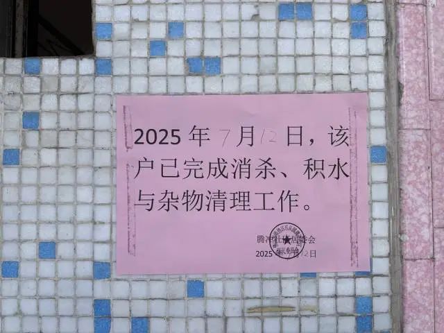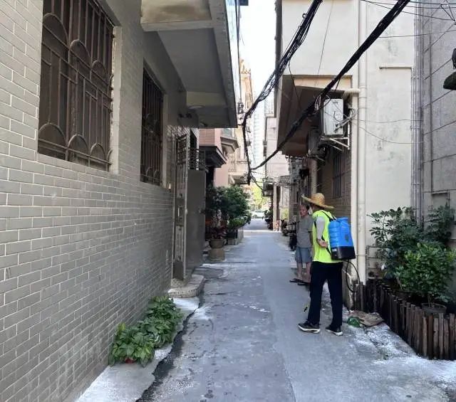 入户检查、消杀蚊虫,是社区工作人员近期的每日必做事项。巷子里,不时可见忙着清理垃圾杂物的身影,有时还能遇到背着蓝色喷雾器的消杀组,对着路边植物、墙面等喷洒灭蚊水。